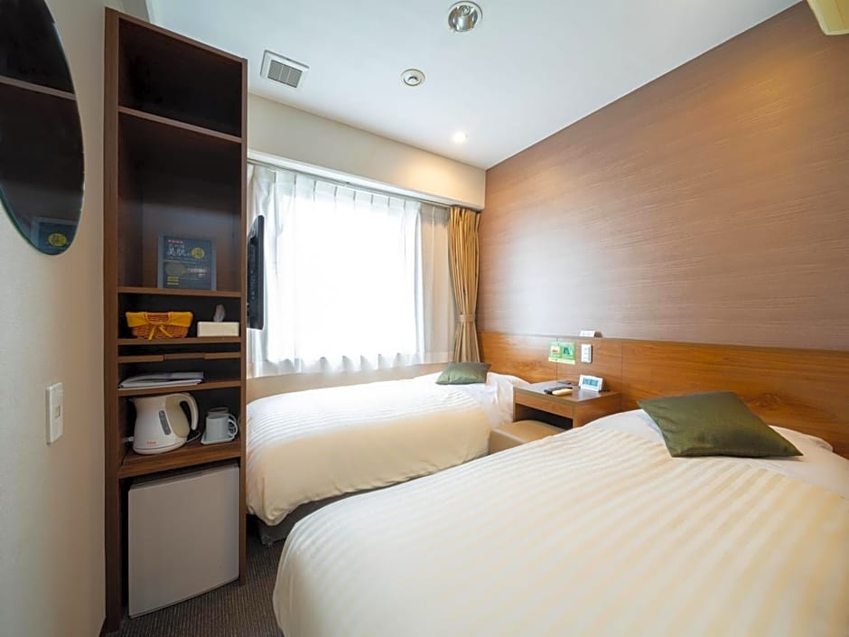 Air-conditioned compact room featuring twin beds, a 32-inch LCD TV and a mini-fridge. It comes with an air humidifier, while pajamas, toiletries and a hairdryer are provided. Free Wi-Fi is available.